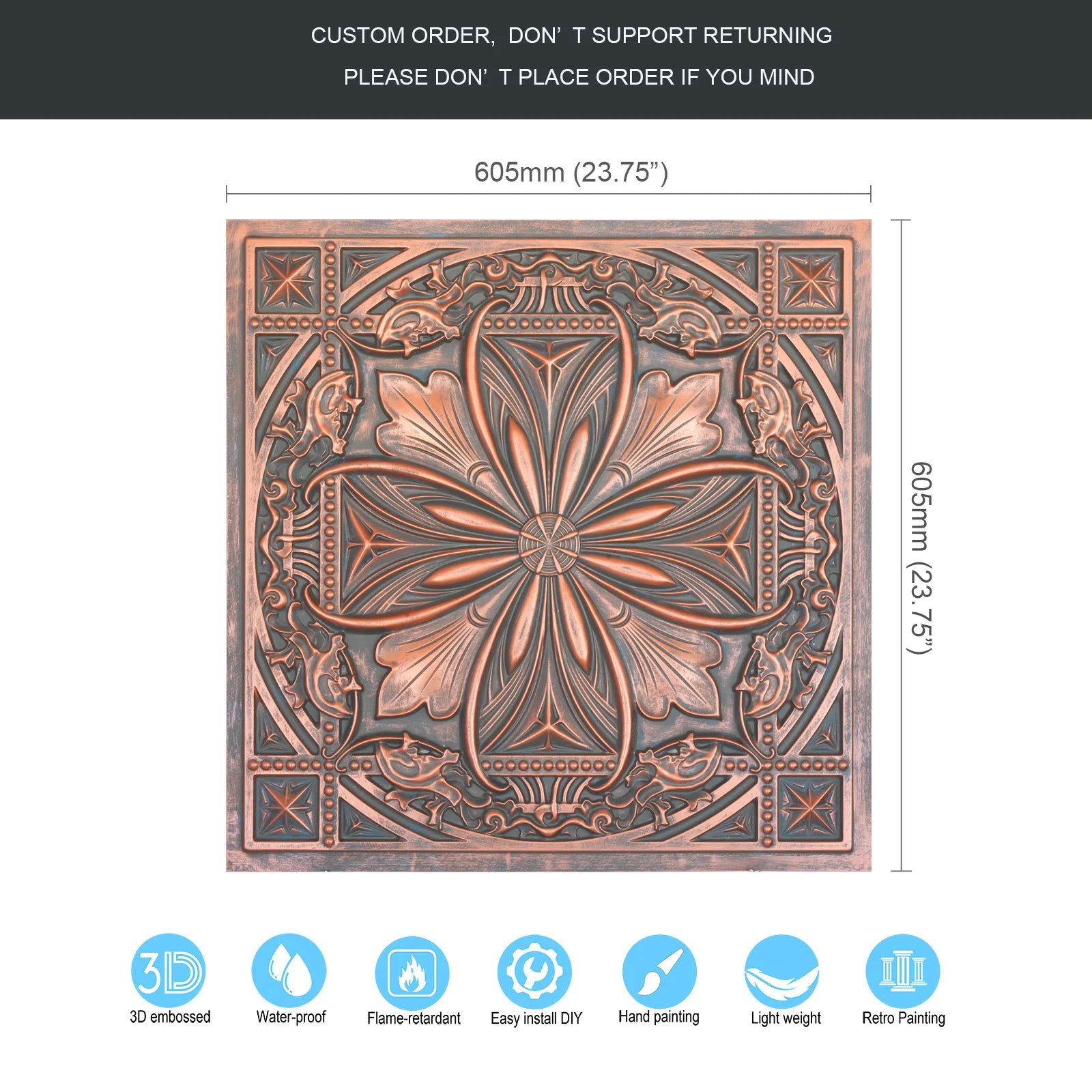 Dimension: 23.75" x 23.75"(or 605mmx605mm)